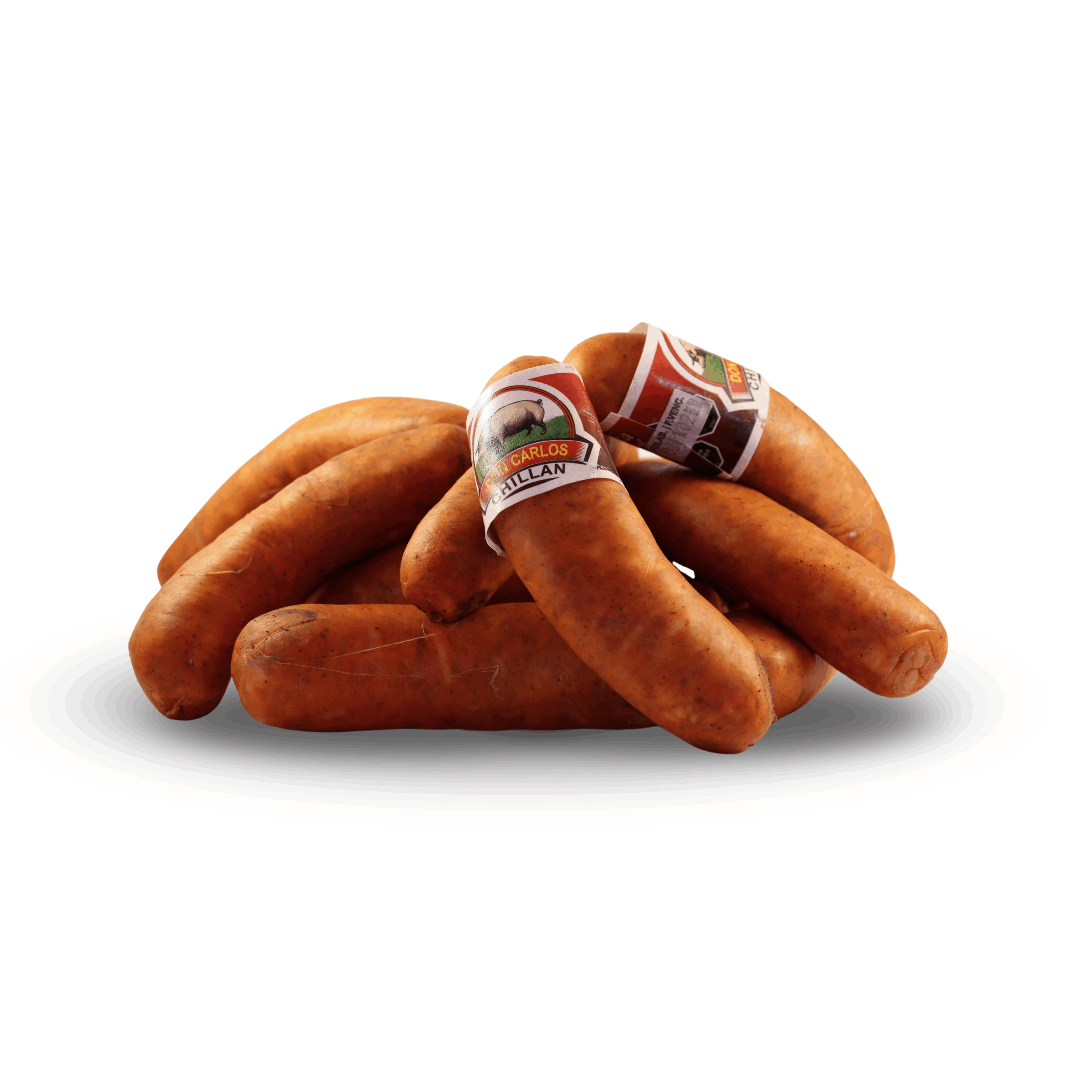 La Longaniza Parrillera Don Carlos destaca por su sabor robusto y su textura firme, especialmente diseñada para la parrilla. Hecha con carne de cerdo molida y embutida en tripa natural, esta longaniza es ahumada artesanalmente, aportando notas intensas y un aroma irresistible.